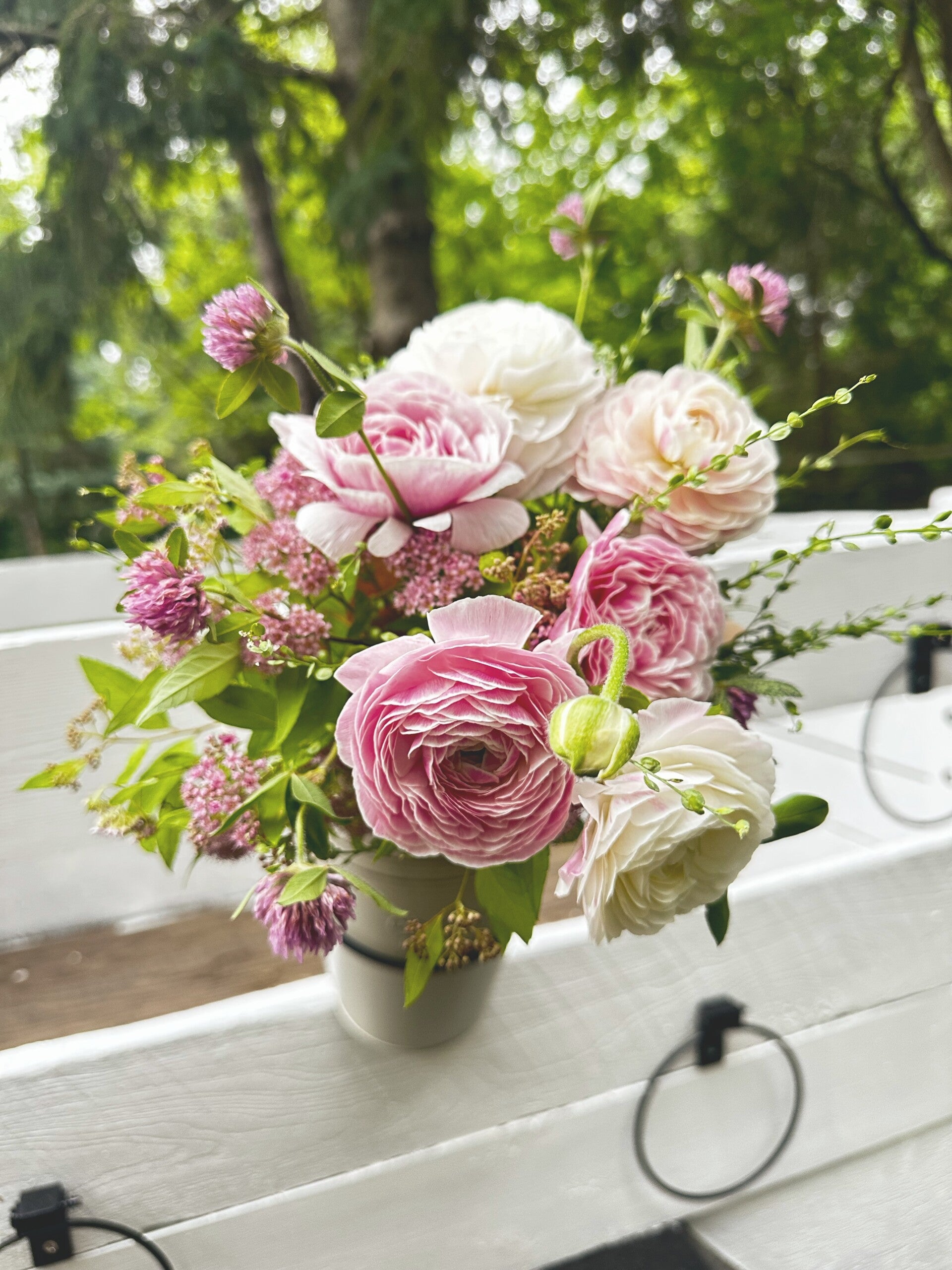 Beautiful Elegance and Porcelaine ranunculus mix, market bouquet pre order.